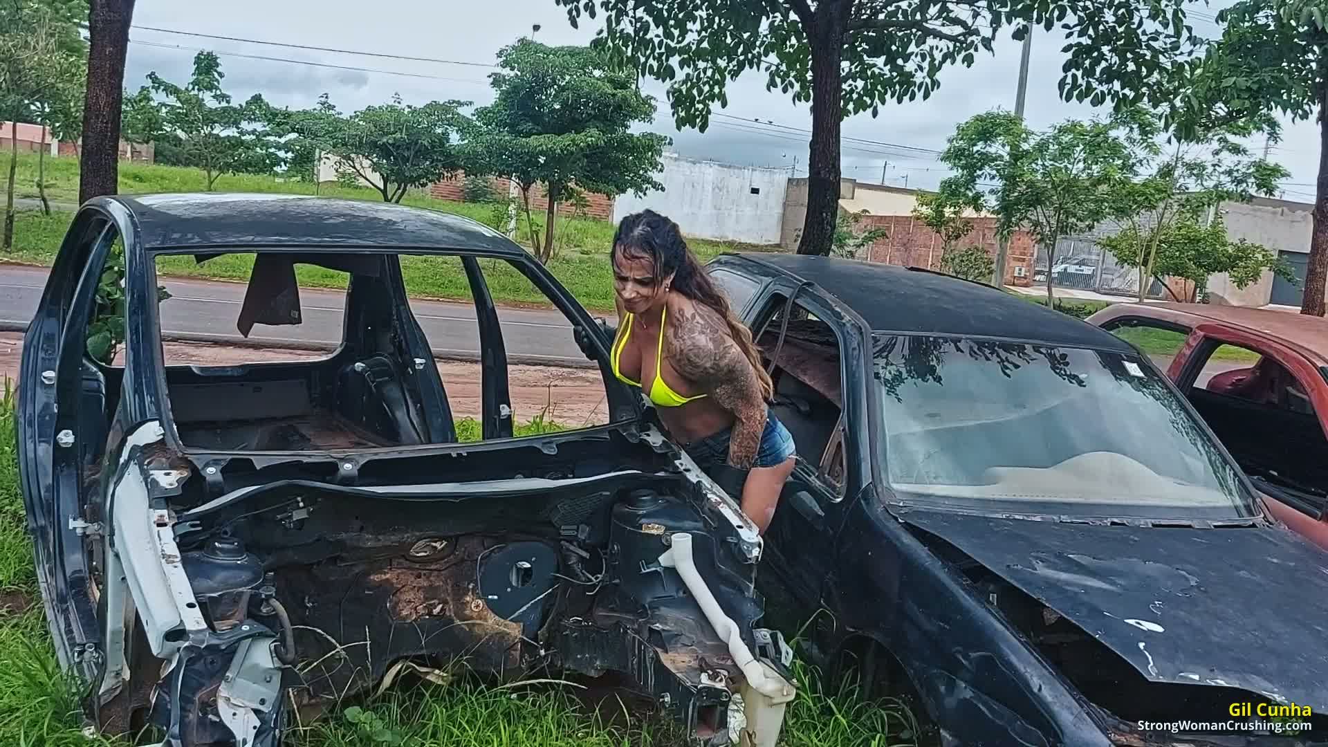 This clip is amazing and so is her strength.Ihope she does more clips like this in car scrap yard maybe…