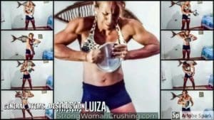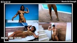 GlauceGlauce uses a long metal rod to test her strength. She flexes her powerful biceps, chest, and leg for us a couple of times. She is simply amazing strong. She picks the long metal rod and starts to bend it one... two... three.. several times. You can see how she enjoys doing that. She loves to show her strength.