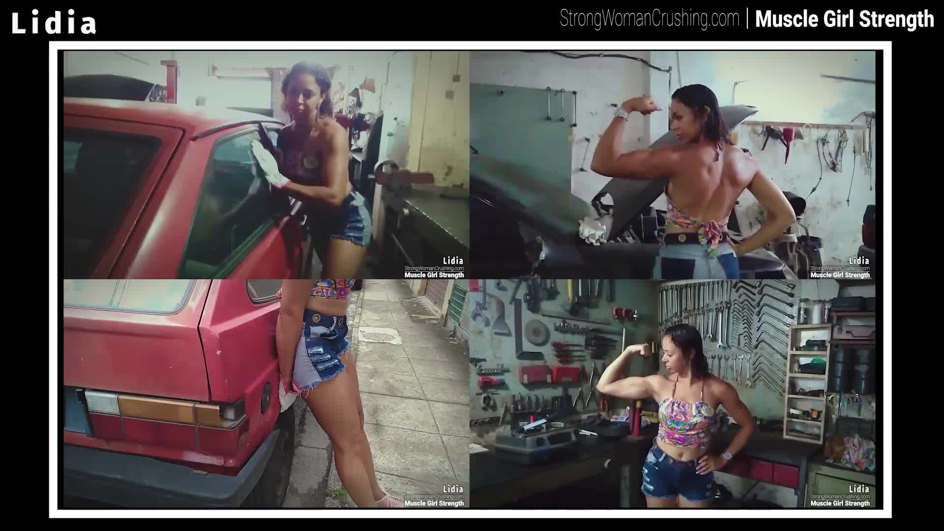 LidiaLidia is getting stronger and stronger and tries to lift a car. Her muscles have grown her strength has increased even if that is not a complete lift still fascinating to see this Amazona trying and getting the vehicle almost off the floor.