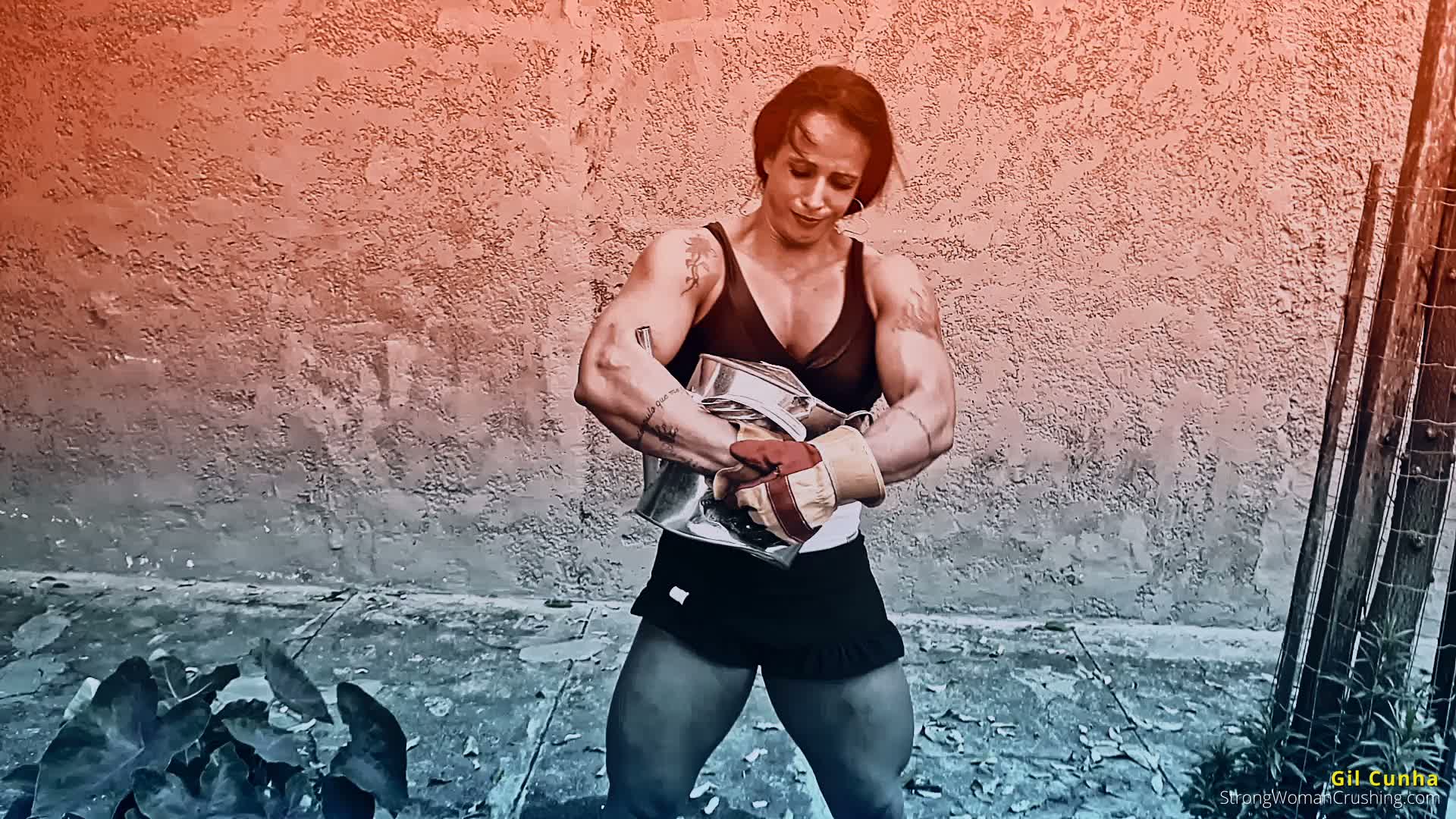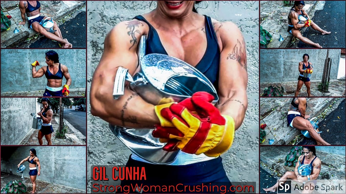 GilcunhaGilcunha, a muscular woman, effortlessly destroys a very sturdy watering can.