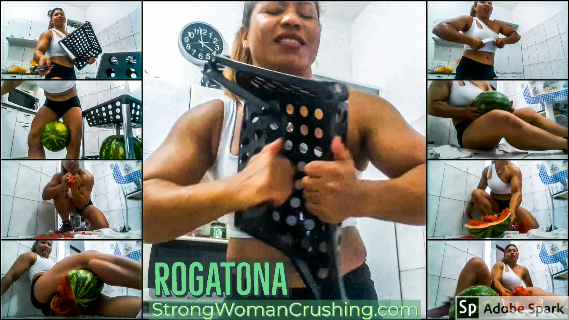 rogatonaMuscular Rogatona smashes watermelons with her bare hands, a must-see for viewers who love strong women!