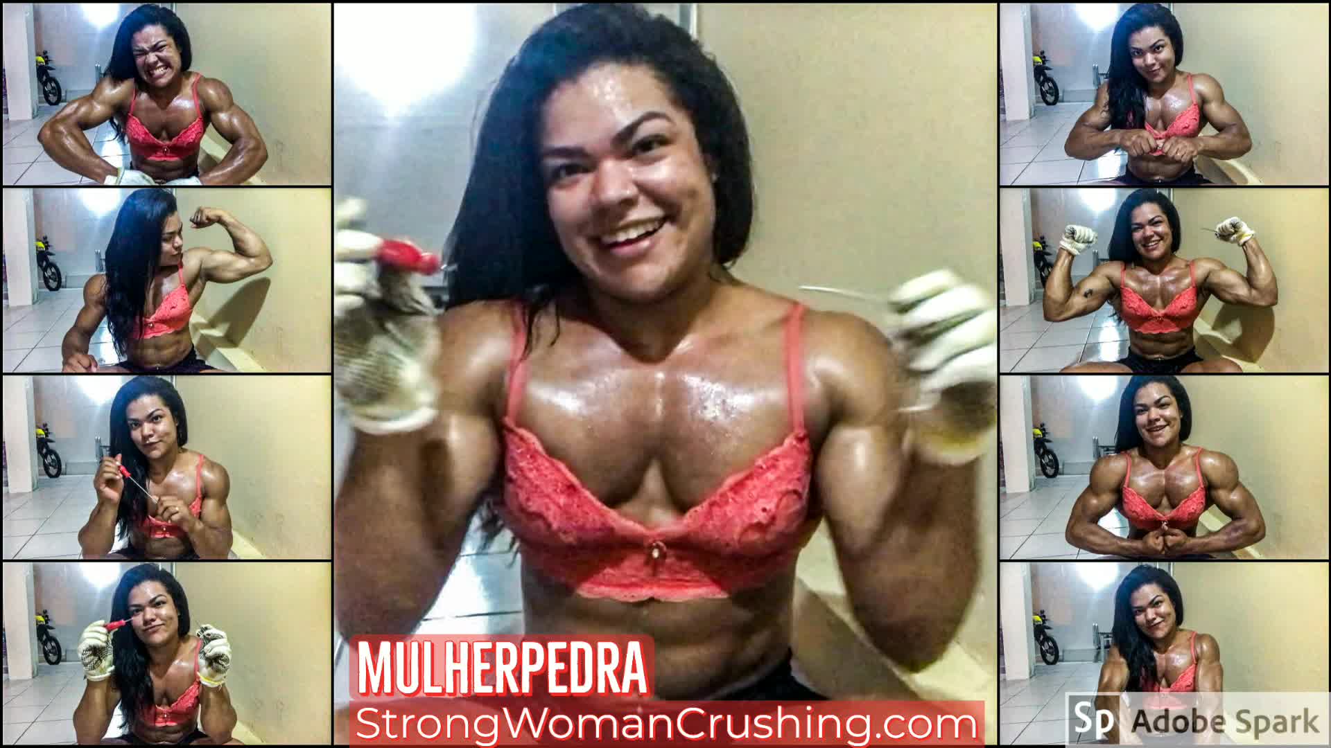 mulherpedraMulherpedra is far stronger than your wild imaginations. She could bend and torn apart metal tools easily using her super muscular arms and pecs. In this video she bent some metal screw drives, not only bent she broke them in a half. Never done before she tore screwdrivers in this video.