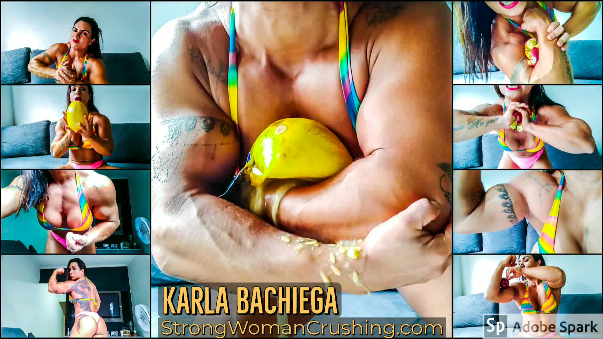 karlaKarla Bachiega destroys apples using her colossal strength and power, ending with a superhuman bearhug in a poor melon leaving only juice and a mess.