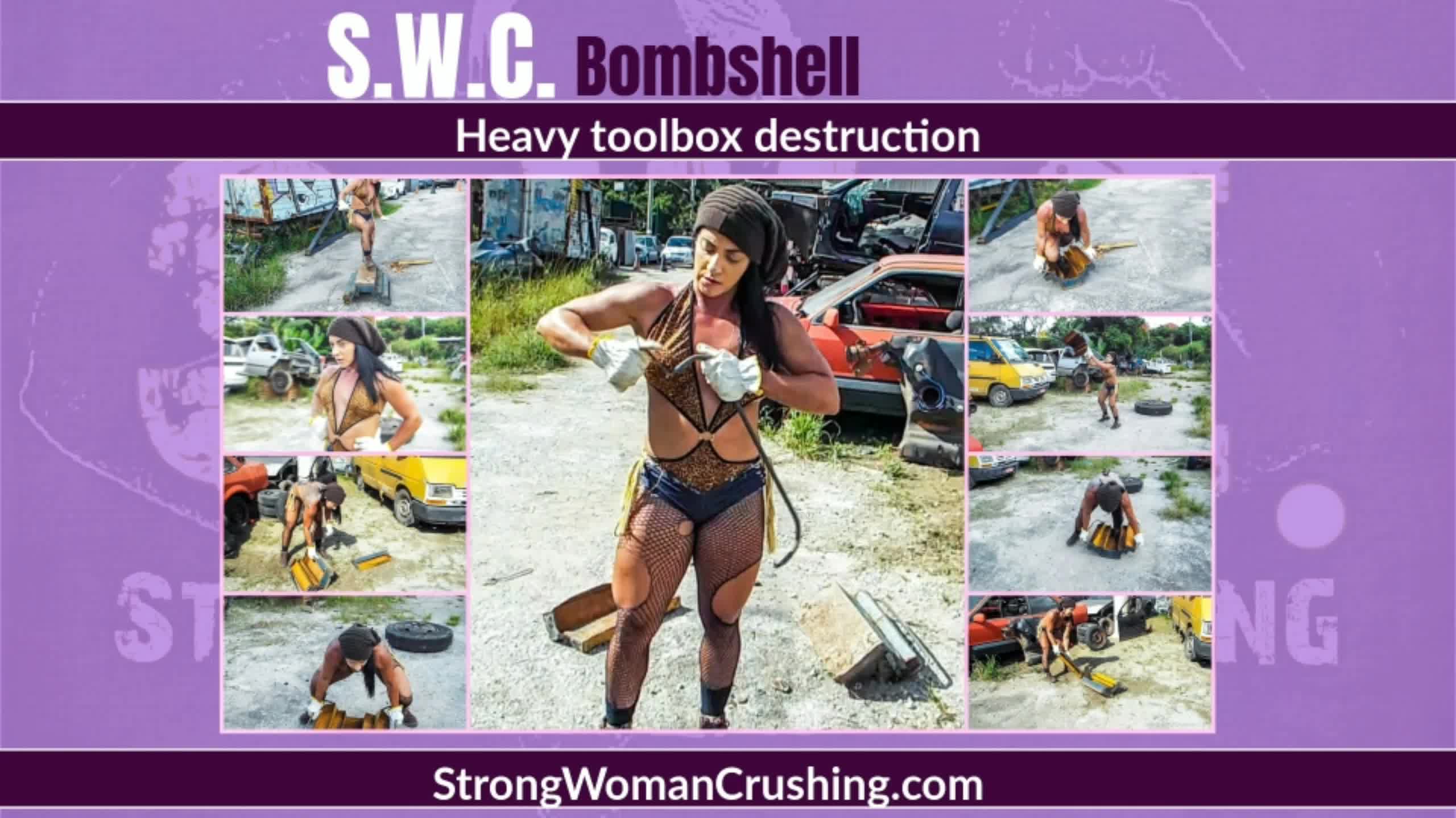 BombshellMuscle-packed Bombshell effortlessly obliterates a heavy toolbox showcasing her incredible strength. Prepare to be amazed!