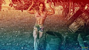 GilcunhaMuscular woman Gilcunha lifts heavy weights, showcasing her strength and beauty.