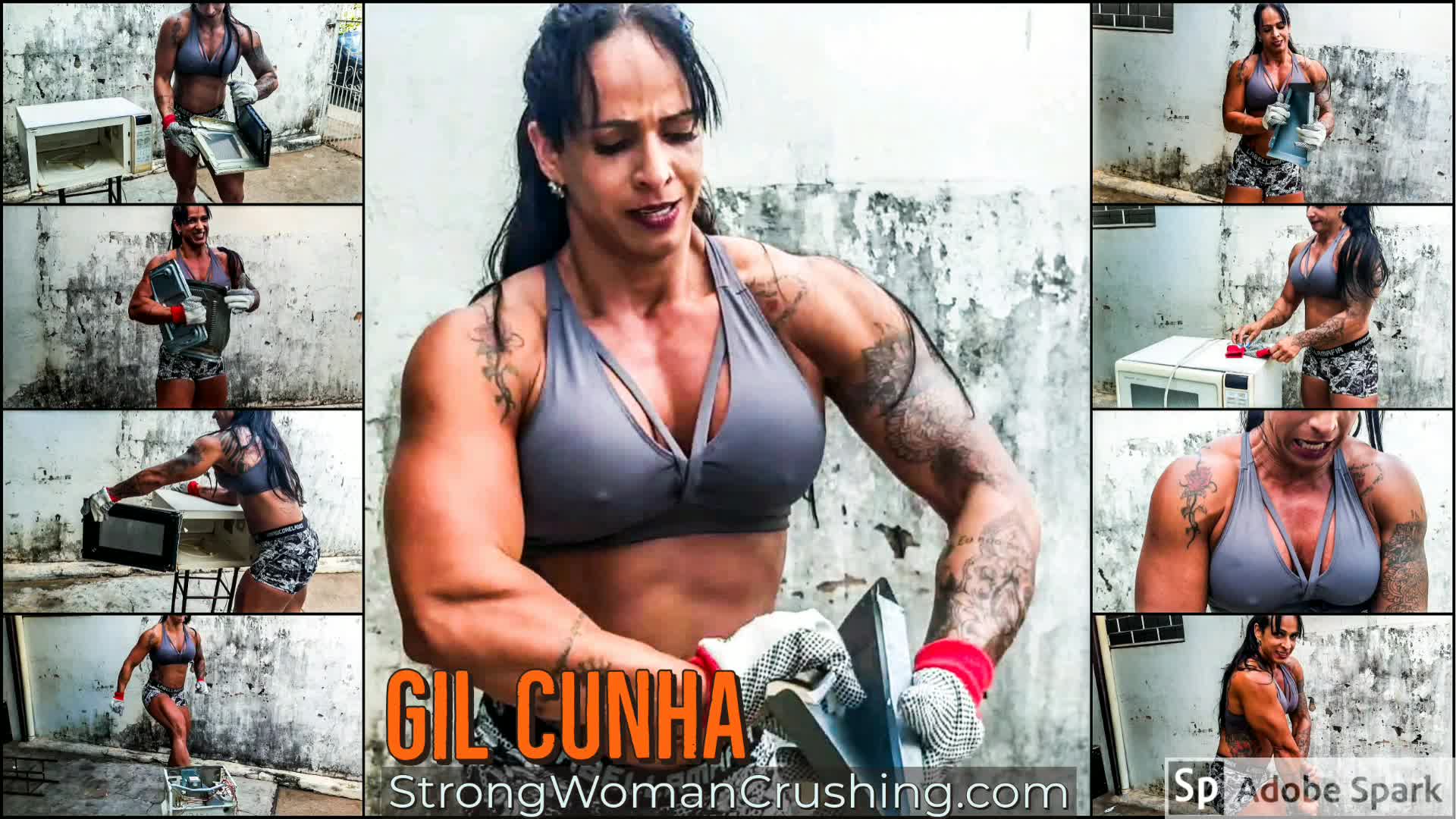 GilcunhaGil Cunha, the true female muscle goddess, is strong, muscular, and beautiful. Someone gave her this microwave, she did not want it. So she did what she does best. Muscle flexing and destruction. She tore that microwave door as it was made of paper. She breaks it into tiny pieces and bends all metal plates using her ungodly strength. Her pecs look like they are made of steel, Soo hard and strong. Those big and muscular arms bending and ripping metal is a true show.