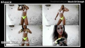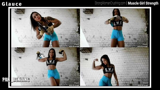 GlauceGlauce, a muscular woman, destroys a metal pan with her bare hands! Enjoy her strength in this short video.