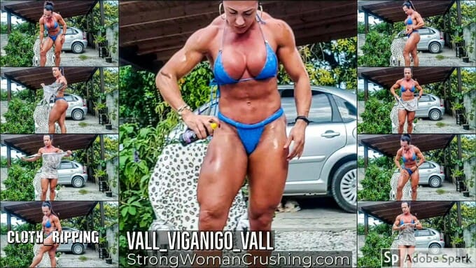 vallVall, a muscular woman, shows off her strength by ripping her blouse with oil. Enjoy the show!