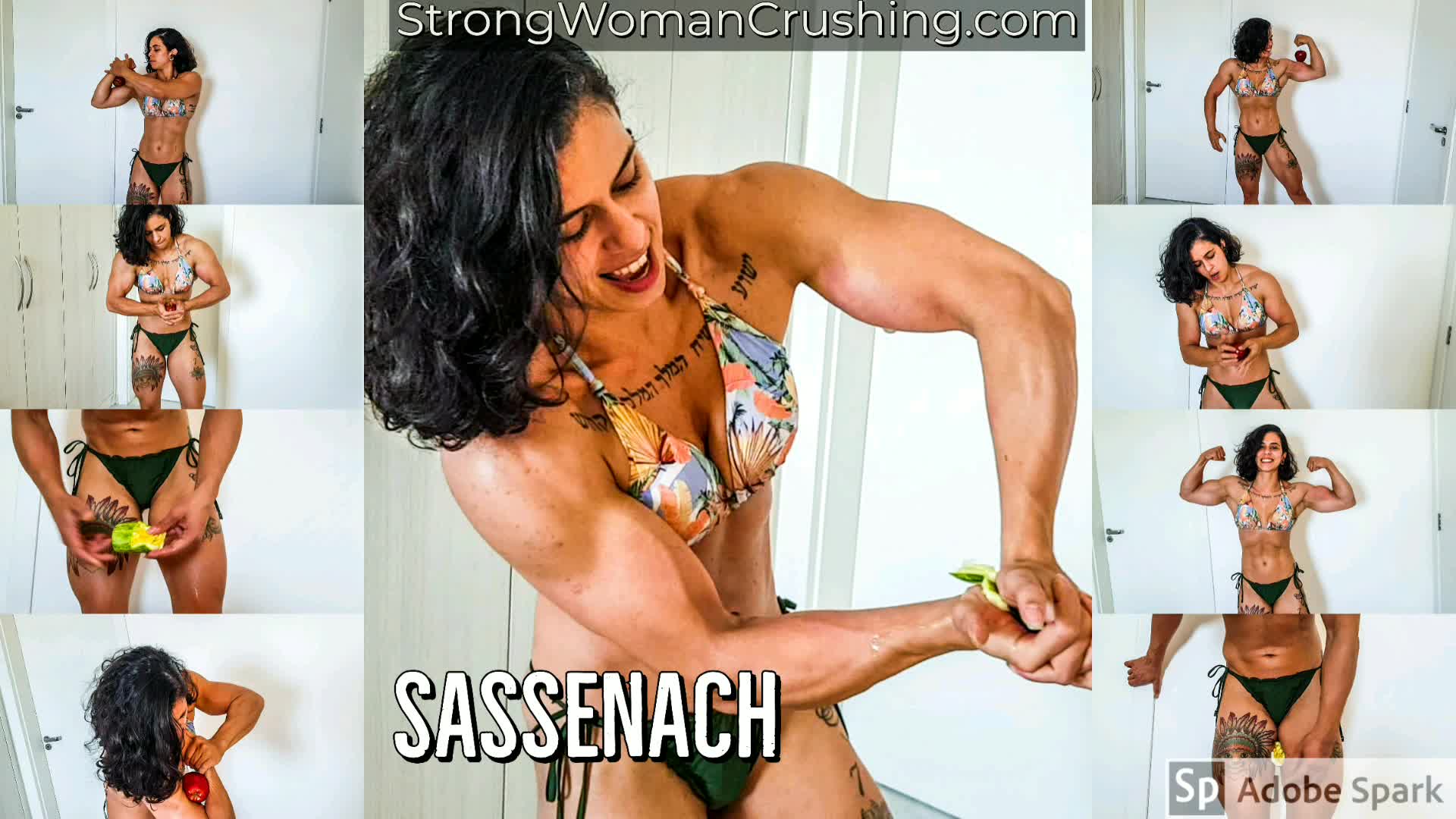 SassenachSassenach, she is amazing. Muscular, strong, and full of attitude. She crushes several fruits using her powerful muscles. Her biceps are strong as rocks.