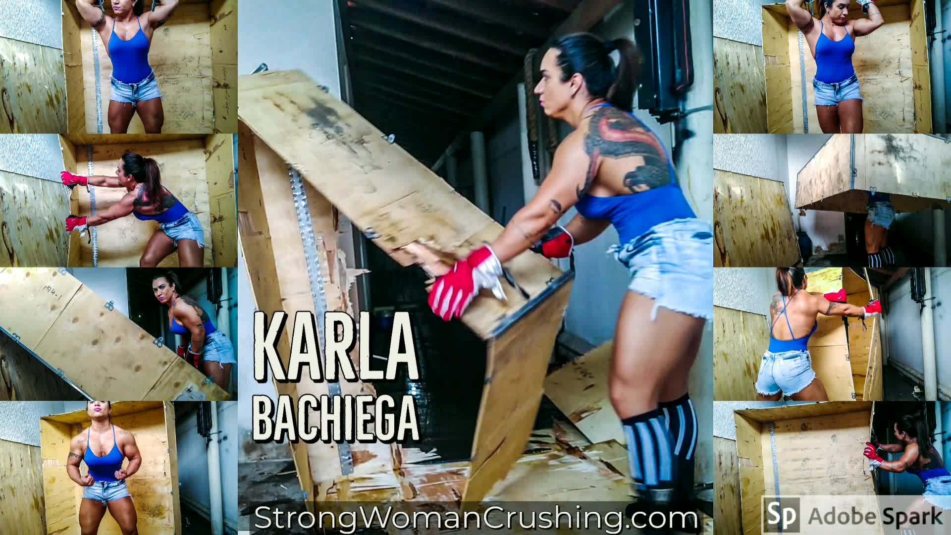 karlaKarla, she is a perfect Amazon. Beautiful, muscular, strong and loves to show her strength. She wanted something big to destroy, so we arranged a big piece of furniture to be destroyed. She broke all those wooden parts some metal parts were reinforcing it but those bent as they re nothing. She is bigger and better.