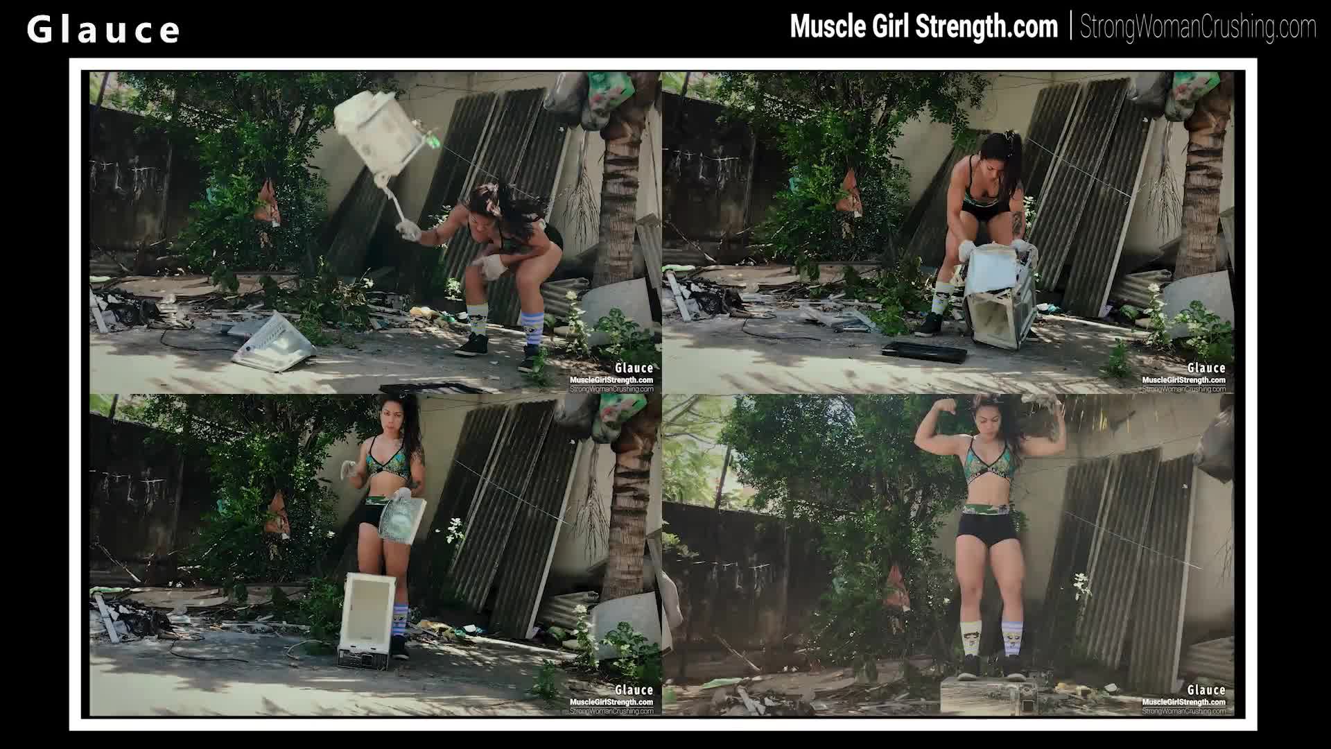 Glauce is back. She takes her chances against a microwave. She saw other girls destroying one and she cannot let that pass. She must be the number one destruction goddess on our site. She rips its door in one big pull. Stay ready for some throwing action in this video. Her anger and destruction are above anything. Her desire to destroy is above all. Her arms and legs are stronger than any material. Her biceps and backs are impressive as always.
