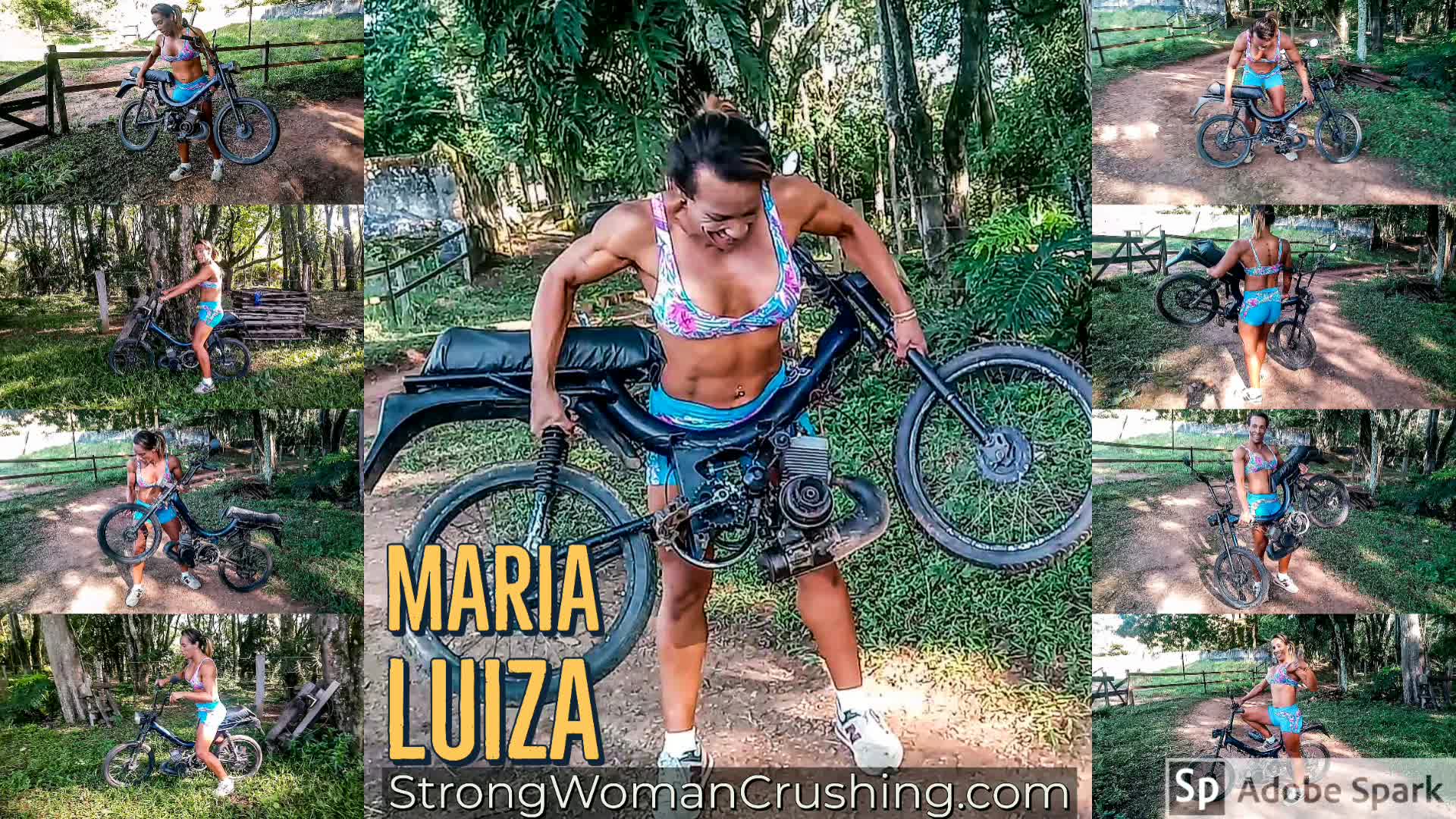 marialuizaMaria Luiza is a powerhouse far stronger than any women and men you know. She flexes her strong and dense muscles using her absurd strength to lift a moped bike weighing around 220 pounds. She uses it as her weight. She almost lifted overhead.