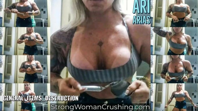 ariariasAriarias is a powerful woman who bends a giant metal spoon with her huge muscles. Perfect for viewers who admire muscular women.