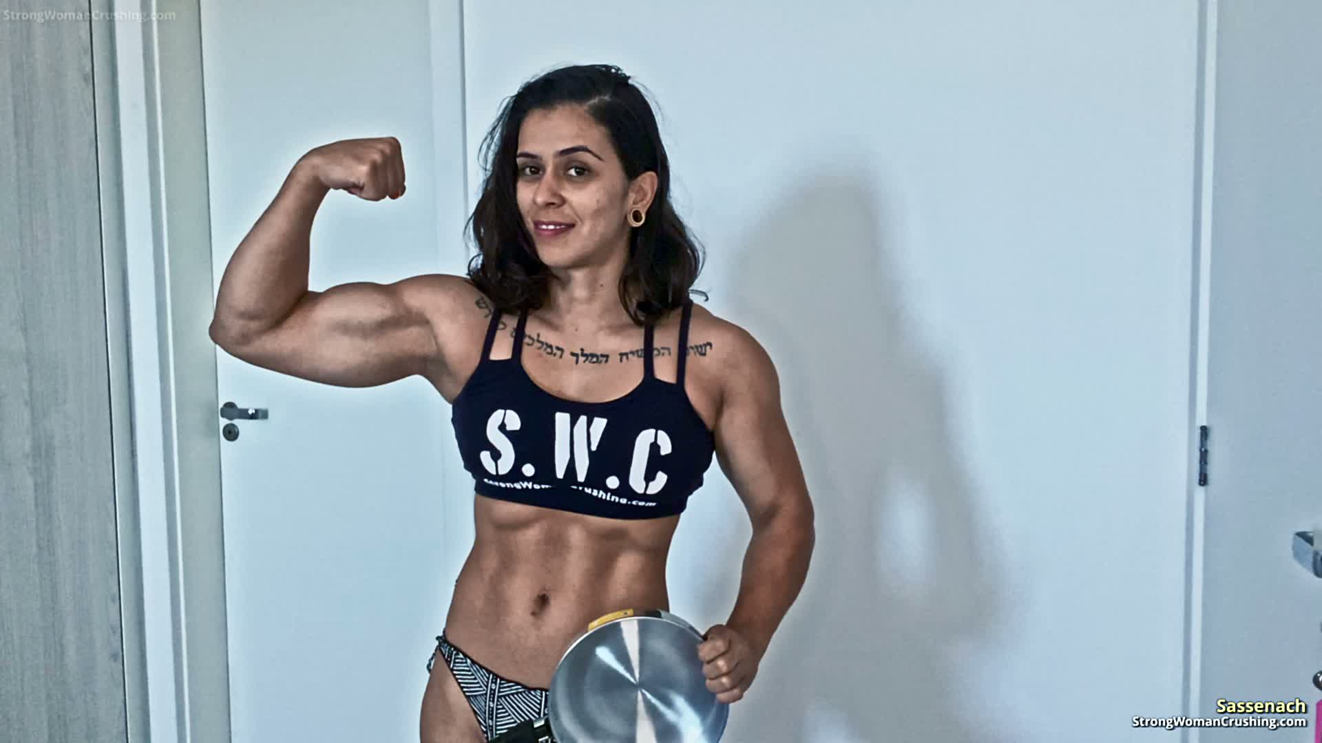 Sassenach with her big and might biceps made of steel. She flexes all that muscle displaying her power. She can bend steel and iron with her bare hands then she proceeds by destroying a metal pan without difficulties.