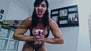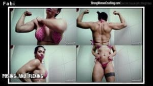 fabiFabi is a muscular woman who shows off her sensual moves in this video. She flexes her muscles and shows her strength.
