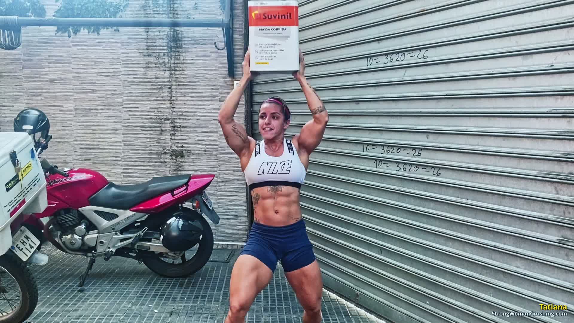 Tatiana uses her muscular powerful body in this video lifting a heavy paint can and uses it as weight equipment it weightless finishing this video she curls a …