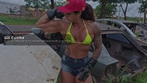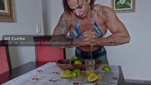 GilcunhaGilcunha is a muscular goddess, rocking a flower bikini and showing off her flexing moves.