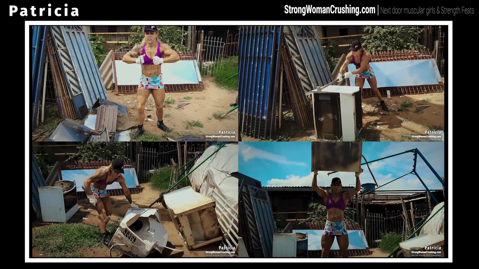 PatriciaPatricia shows what she can do in this video. She smashes lots of metal and destroys a metal stove and a washing machine powerfully. Patricia is a monster with such strength and power. This muscular blonde could destroy anything in her way.