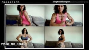 SassenachSassenach flex her hard and sexy muscular body in a green bikini.