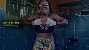 martastrongmartastrong flexes her muscles in a yellow outfit, showcasing her strength for all viewers who love muscular women.