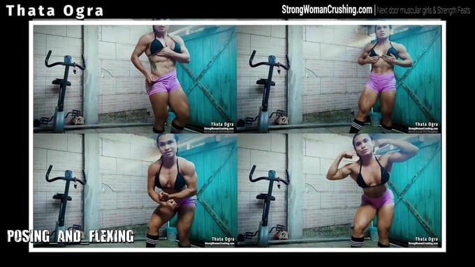 thataograThataogra: Muscular woman flexing in pink shorts! Enjoy watching her toned body and powerful moves.