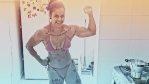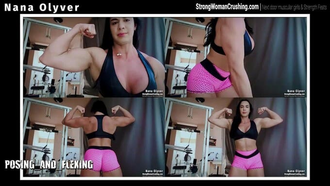 NanaNana Olyver shows off her impressive physique in pink shorts. A must-see for viewers who love muscular women.