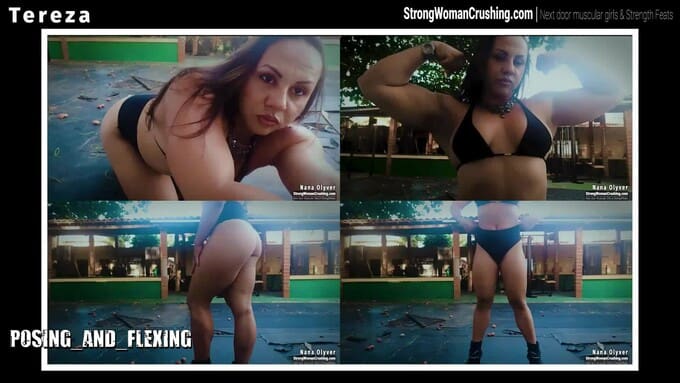 TerezaTereza, muscular woman with curves, rocks a black bikini in this video. A must-watch for viewers who love muscular women!