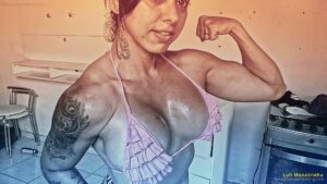 luhmonstrinhaLuh Monstrinha shows all her superior power and muscles by flexing her massive pecs and traps and destroys your puny fluffy toy, she rips it apart as she will do with you.