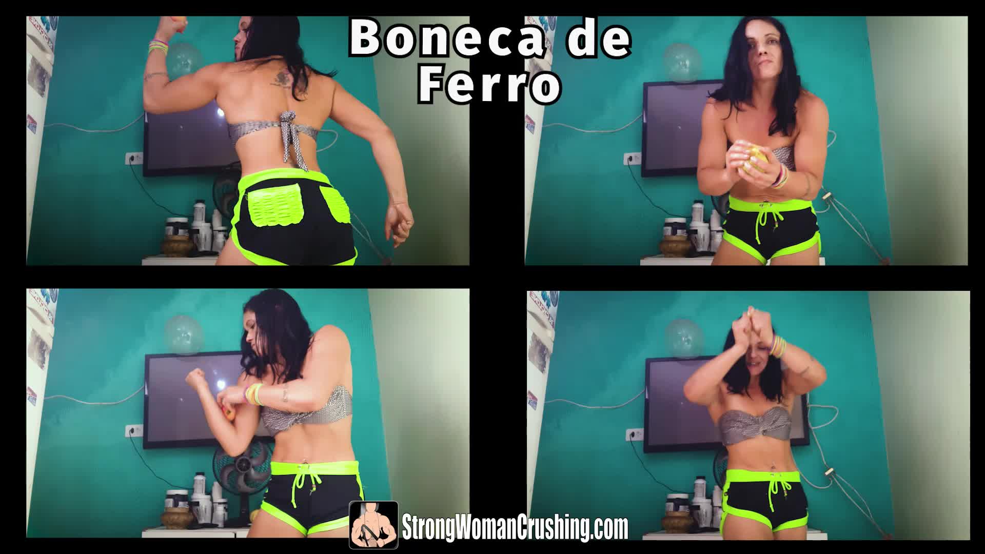 bonecaBoneca de Ferro uses her strong and fit arms to crush lots of apples in this video watch as all those fruits get pulverized in her strong hands.