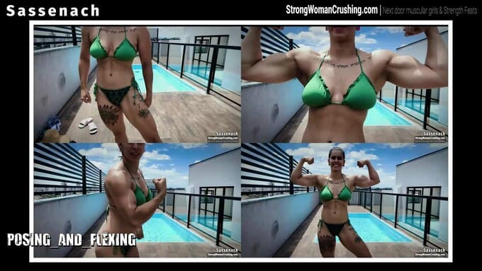 SassenachSassenach shows off her incredible green muscle beauty in this video - a must-watch for viewers who love muscular women.