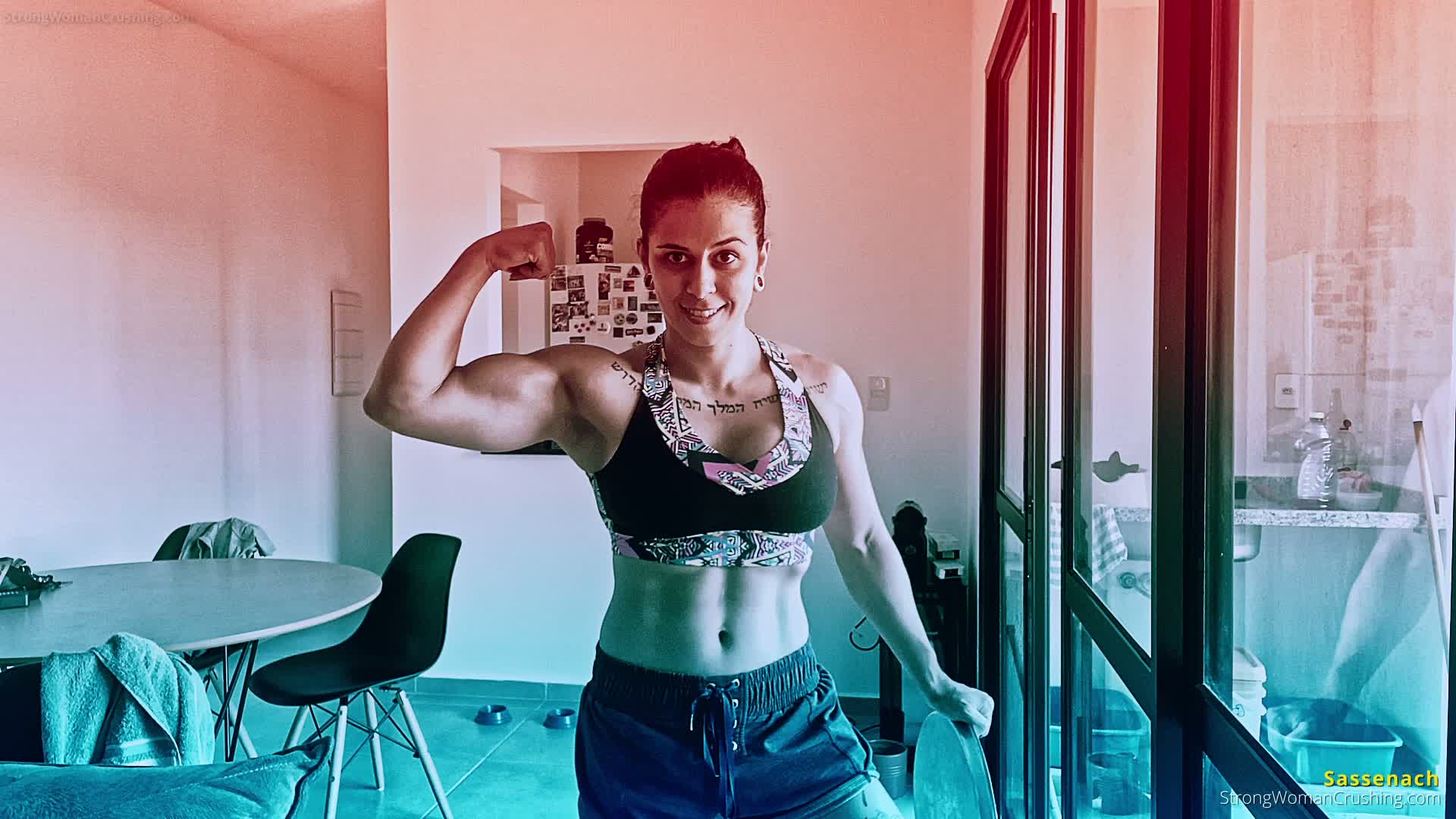 SassenachSassenach uses her impressive biceps to crush and smash a poor baking pan. That poor pan cannot stand her humongous strength, watch this goddess crushes some metal while she enchants you with her smile.