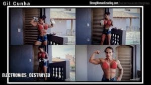 thataograThata Ogra uses her unstoppable strength and smashes an entire metal fair cart leaving only a couple of metal mangled and crushed pieces ending this video in a fierce flexing pose.