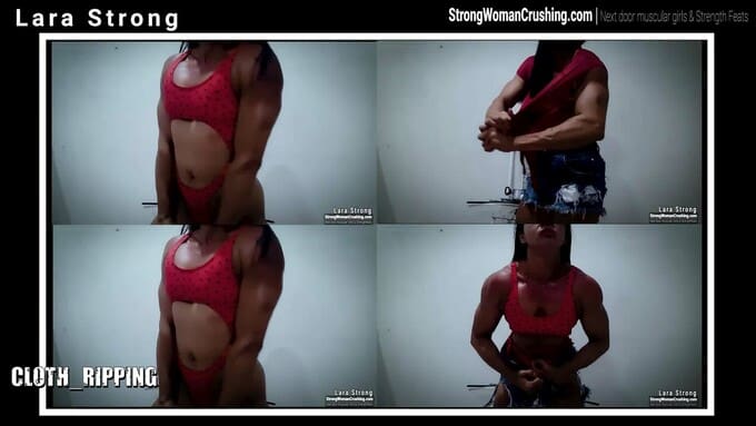 larastrongLara Strong bursts from her clothing using only her strength and muscles. Watch as her muscular arms and pecs rip thru the fabric leaving only shreds.