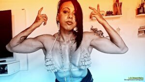 RedRED shows in this video how she enjoys pushing her muscles while she crushes and tears a smartphone apart. Her biceps and pecs get pumped hard while breaks every single piece of that smartphone. Nothing can resist her strength.
