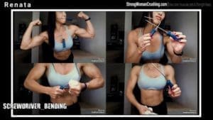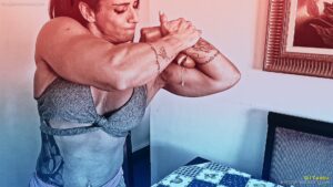 karlaKarla Bachiega shows how she will demonstrate her strength and muscle at home in this video. She destroys a pan in the kitchen using her gigantic arms. She lifts without effort a couch and a washing machine just for fun.