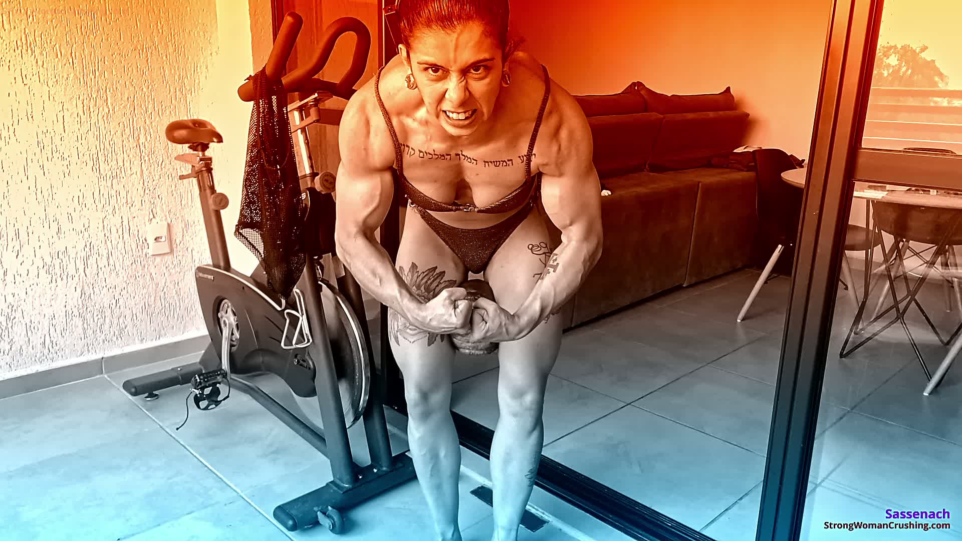 SassenachSassenach commemorates her Halloween using her muscles and strength for some pumpkin-crushing action. Watch this gorgeous muscular goddess in costume smashing that hard fruit using her powerful legs and arms.