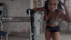 Fabi uses her muscle and breaks some woods