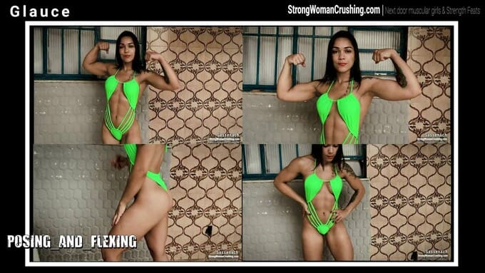 GlauceGlauce, the muscular goddess, shows off her stunning physique in a green bikini. Perfect for viewers who love muscular women.
