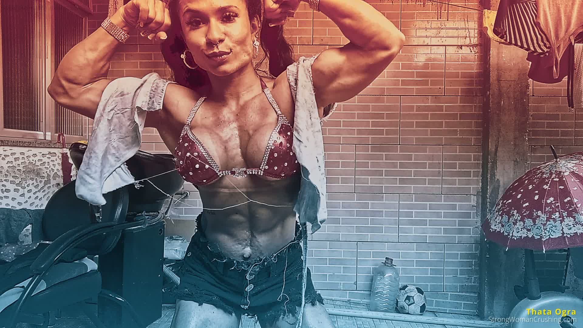 thataograThata Ogra uses her shredded physique and rips some clothes from her muscles. Watch this goddess use her immense power and destroy all that fabric flexing her muscles displaying all her might.