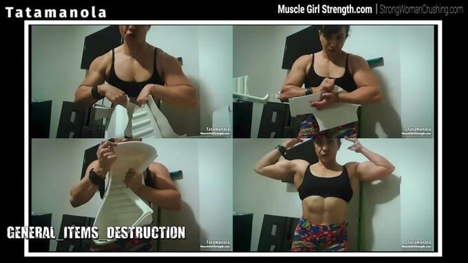 TatamanolaTatamanola might and strong destroy a plastic drawer using her bare hands. Watch this monstrous muscular female ripping a big plastic container with her pure strength. Tatamanola could crush you with her hands.