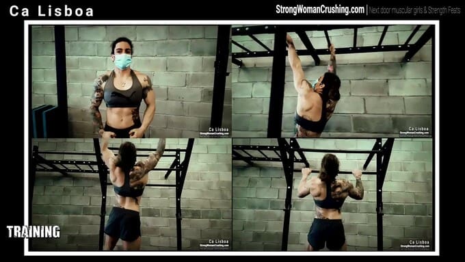 Watch powerful Ca Lisboa showcasing her muscular physique in intense gym workouts. Model: CaLisboa.
