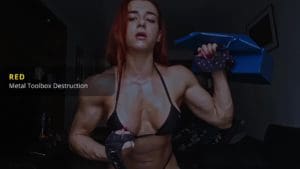 RedRED expresses her rage and strength by destroying an old DVD player with her bare hands. RED flexes her muscles and incredible physique before any action. She starts to rip that DVD apart, leaving mangled and retorted pieces behind.