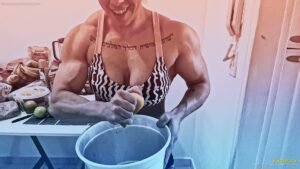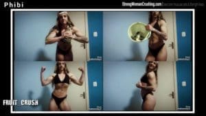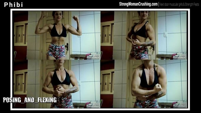 PhibiPhibi, the strong and muscular woman, shows off her impressive physique in the kitchen.