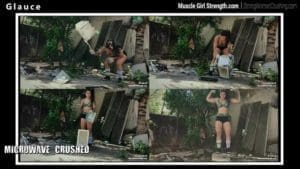 PhibiPhibi flexes her muscles and displays a fantastic physique, but she is wearing an old shirt covering her powers. She hulks out from that poor shirt using her muscular arms and pecs fashionably—such power and strength.