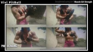 viviVivi exhibits her buffed and muscular physique, smashing something using her power alone. She destroys a microsystem and ironing board quickly.