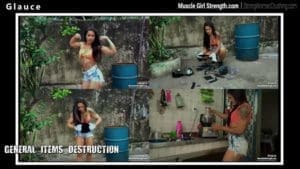 GlauceGlauce shows her phenomenal shape and displays her muscularity power by destroying a printer using her brute strength and hard muscle.