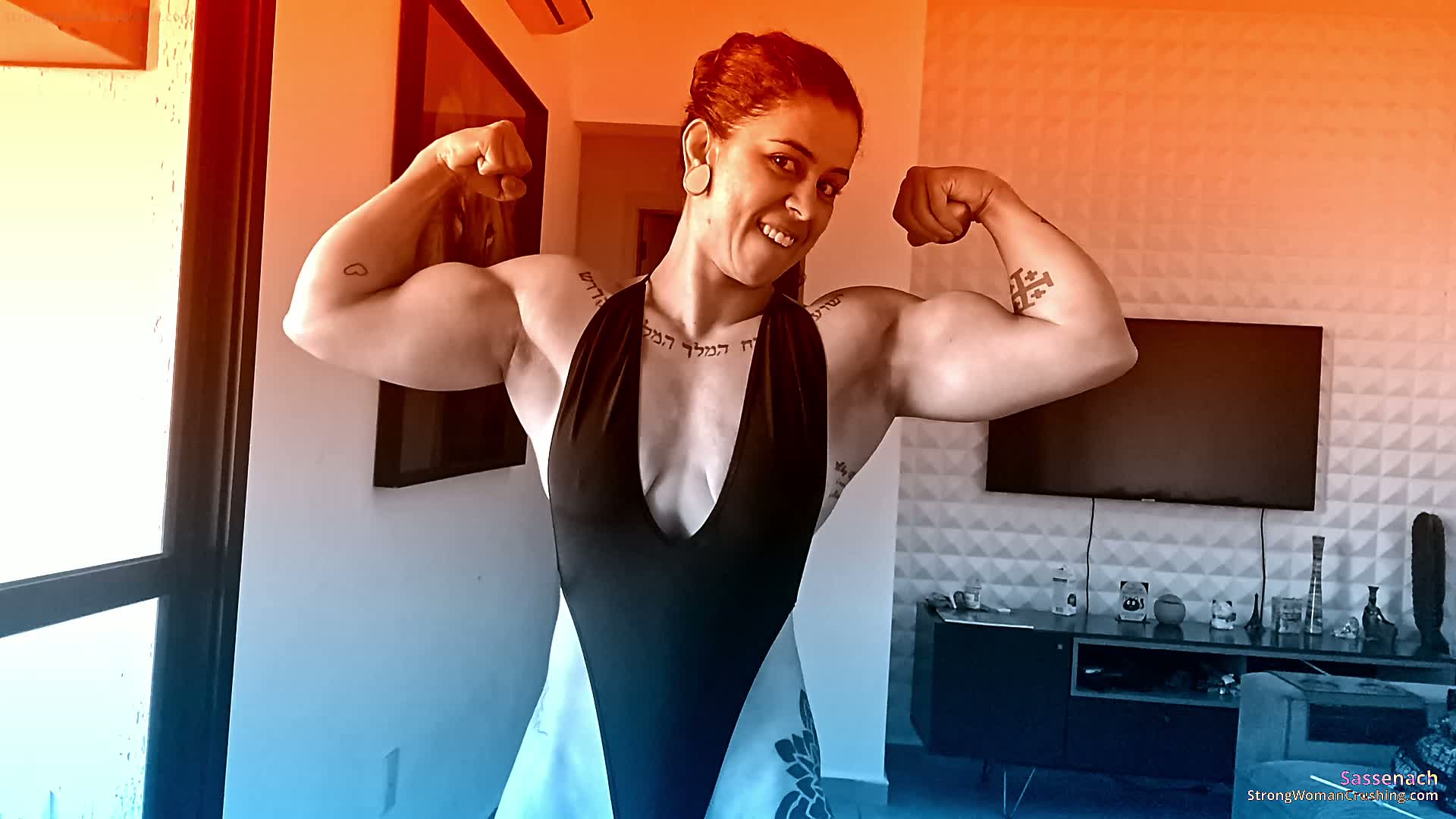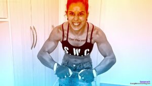SassenachSassenach uses her muscular arms and strength to destroy some apples wearing a sexy swimsuit. When done with those apples, she shows her incredible physique leaving everyone wanting more.