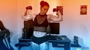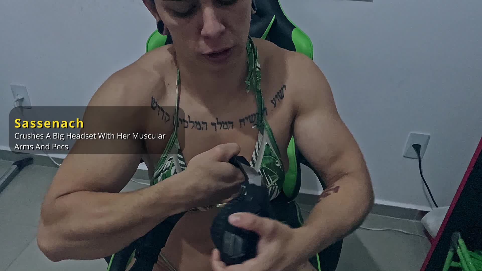 SassenachSassenach has muscular arms and massive shoulders that make her look like a bodybuilding champion. Her large chest looks even bigger when she flexes her abs muscles, exposing her impressive six-pack! Her biceps are thick and powerful as well. She is one badass girl – she can crush anything with her big muscles and rockin body. She easily destroys a gamer headset leaving only pieces on the floor. Let is see how she does it! Watch!