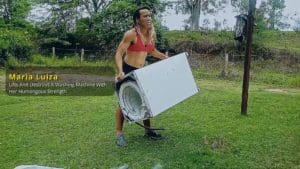 Maria Luiza smash a pan with her muscular arms and superior strength