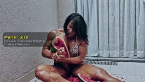 marialuizaMaria Luiza, the muscle girl with incredible feats of strength, took hold of an apple in her hand. With one swift motion, she squeezed it tightly, and within seconds the fruit was crushed into a pulp.